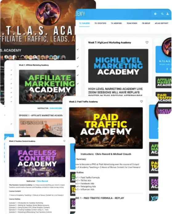 A.T.L.A.S. stands for Affiliate Traffic, Leads, And Sales. And that's exactly what we will be teaching you 5 days per week as a member!